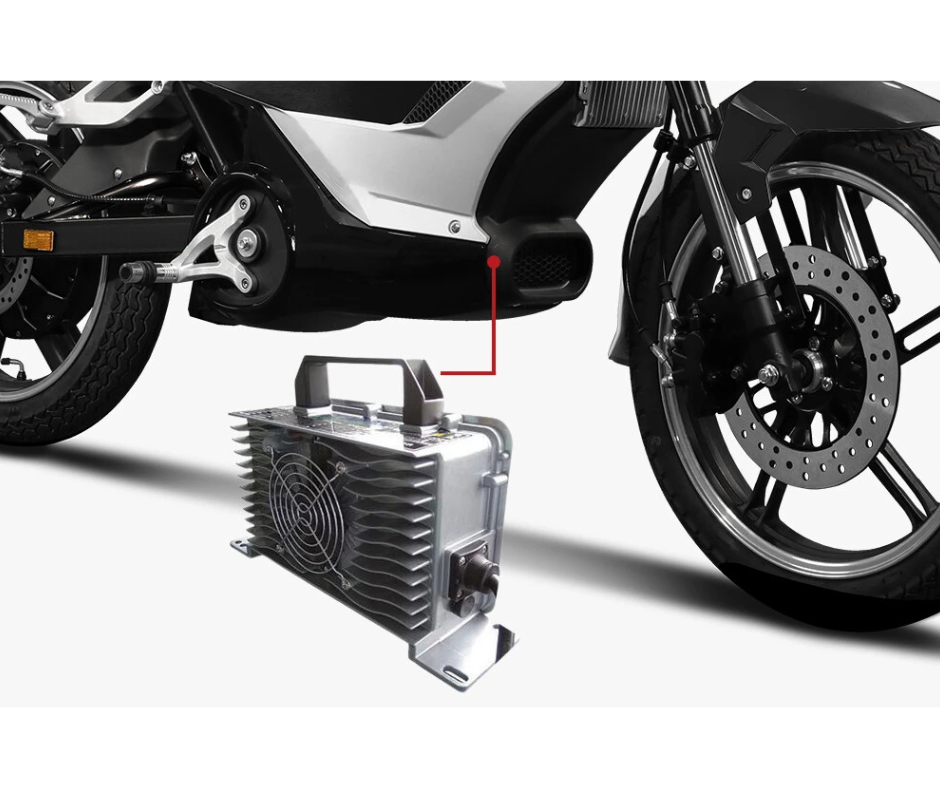 No additional charging equipment needed, the standard 520W onboard charger plugs into any household outlets.You can also take the battery out and charge it in your home or office.